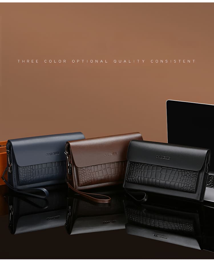 Anti-Theft Combination Lock – Mens clutches holder of anti theft design protects your personal privacy, prevent others from opening your bag casually. The Metal Lock Password can reset, you can easily change the password