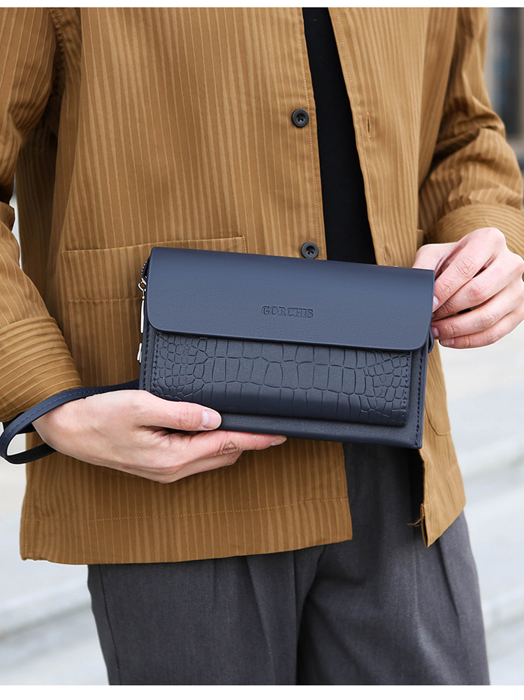 Men’s designer clutch bags phone wallet business passport holder has lock zipper closure, large compartments, card slots to keep your items neatly arranged.