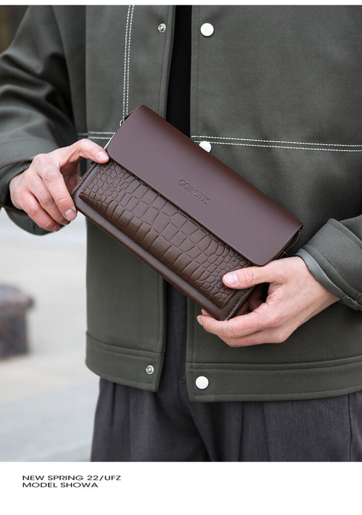 Discover our men’s leather clutch bag with a combination lock—an anti-theft design that protects your privacy. Crafted from soft, shiny leather, this spacious wallet features 12 card slots, 2 compartments, and 2 receipt slots. Ideal for daily use, travel, and business, it’s both stylish and functional.